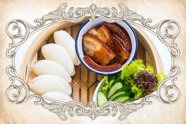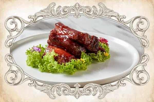 Boneless spare ribs slow-braised in a traditional ‘red yeast rice’ sauce, served with 2 crispy fried mantous at the side