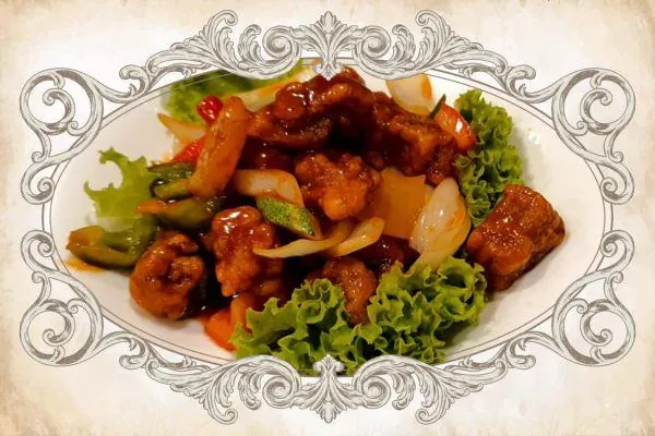 An all-time crowd pleaser of bite-sized deep fried pork cubes stir fried in tangy sweet and sour sauce
