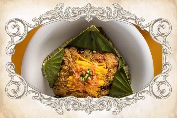 Glutinous rice packed with a plethora of ingredients like chicken, pork belly, dried shrimp, Chinese sausage, mushroom & salted egg, cocooned in a lotus leaf for steaming