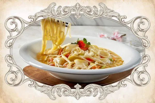Thick, silky rice noodles prepared ‘wok hei’ style with live prawns & premium seafood in a rich gravy, then adorned with crispy noodle chips