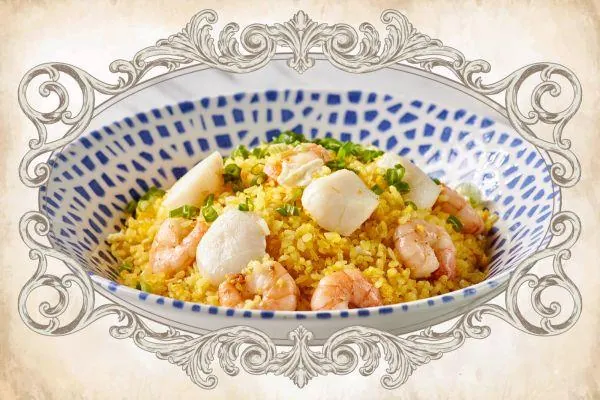 ‘Wok-hei’ fried pearl rice elevated with premium seafood, including whole fresh prawns
